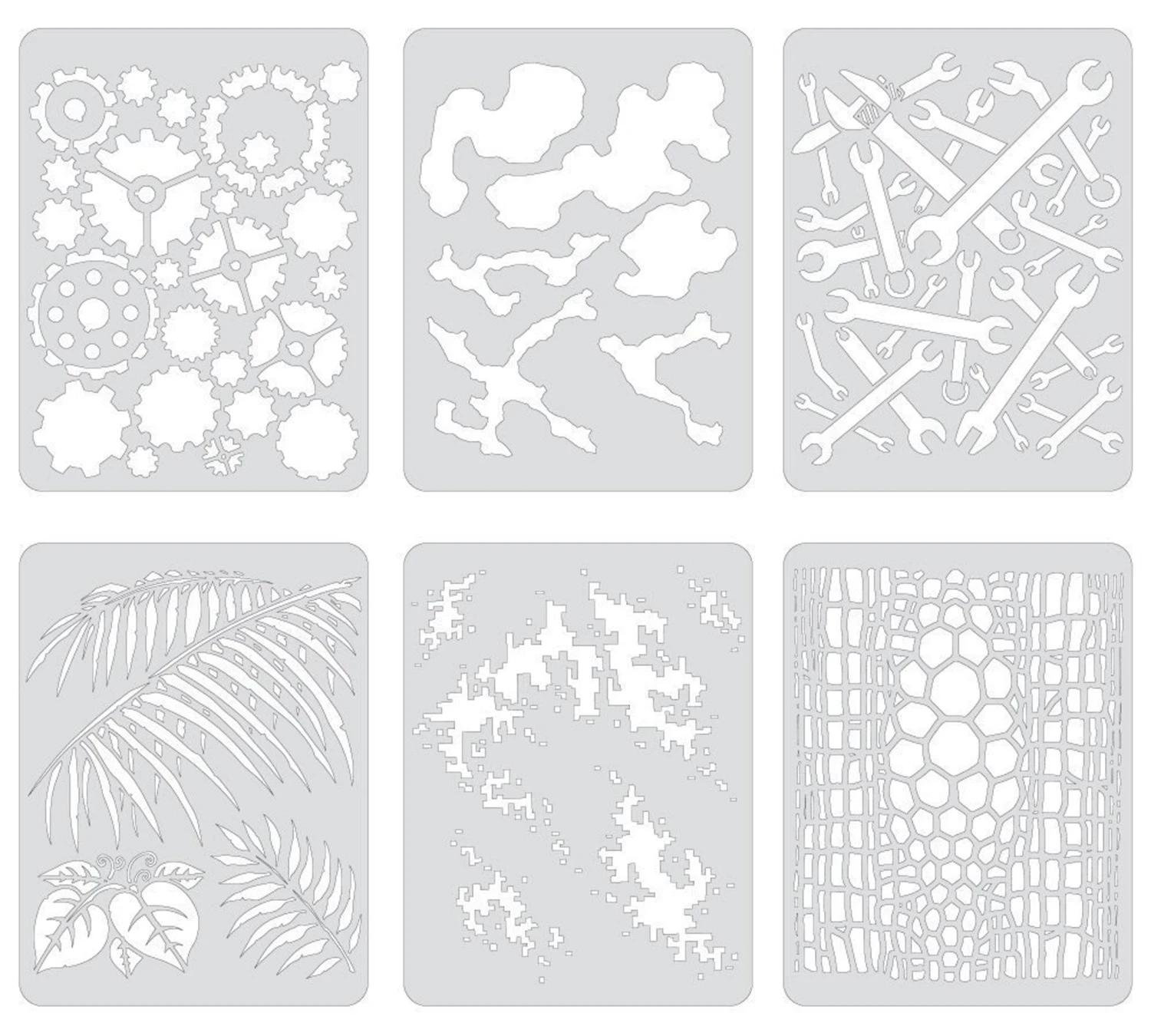 Save time adding texture, detail and wounds to your actors with these plastic templates. Similar to those seen on Face-Off. 6 reusable sheets.