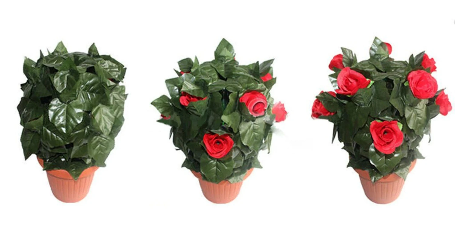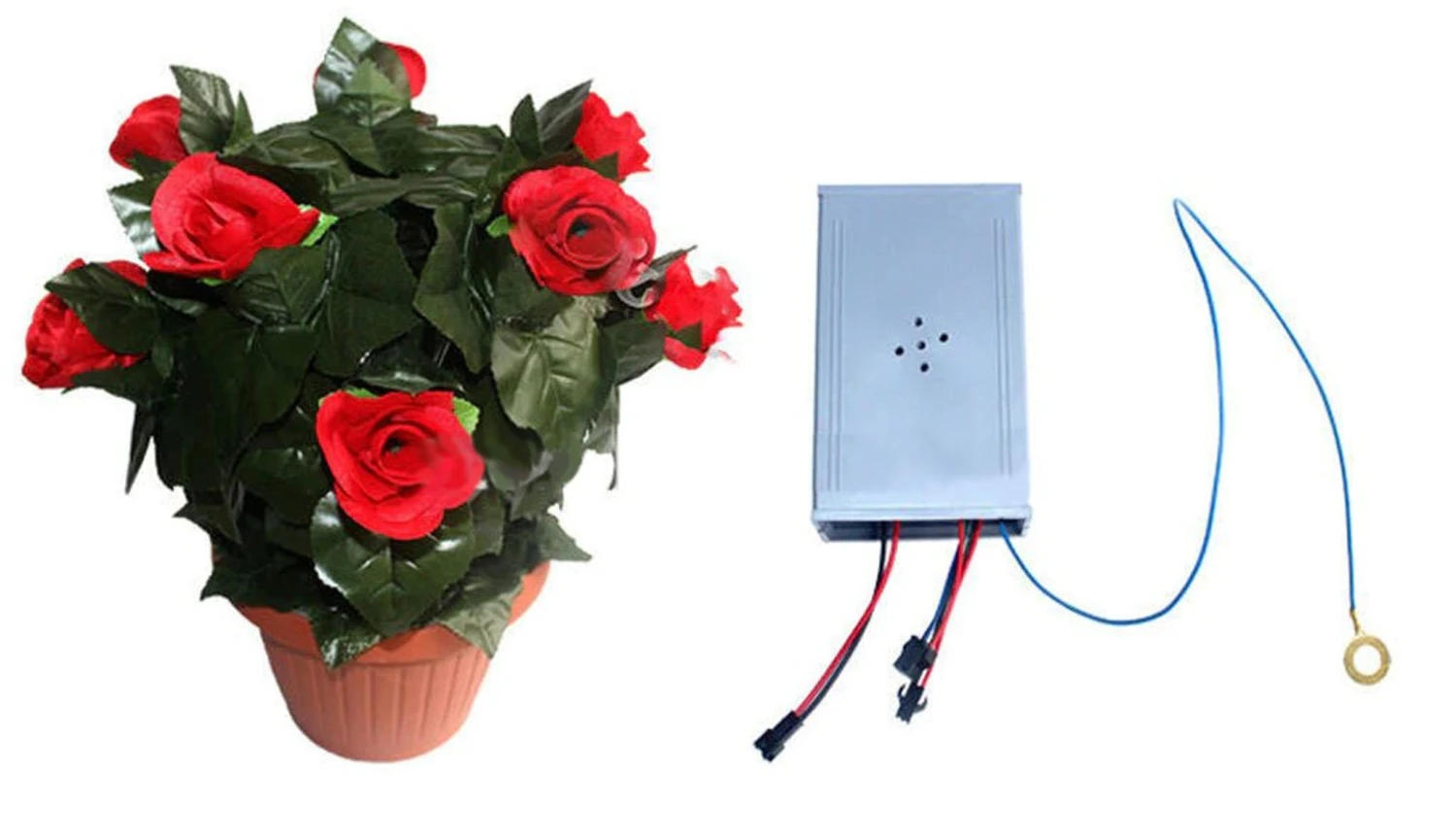 Touching the sensor will activate the plant, and make all the buds bloom into roses before your eyes. It also plays a message or song (you can upload your own audio).