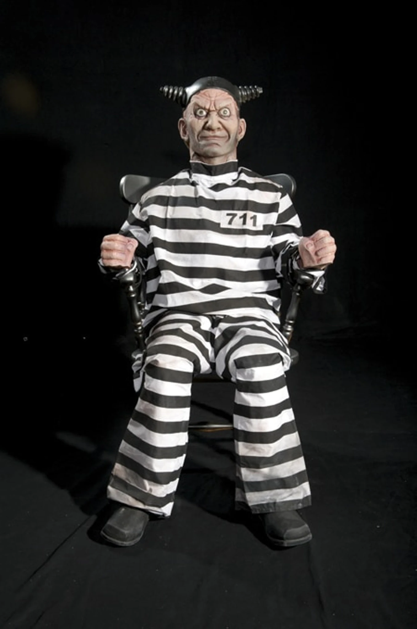 This condemned prisoner has a psycho attitude… taunting the crowd as the switch is thrown. This is one animated halloween prop that will surely leave a haunting impression on anyone who sees it. Perfect for offices’ halloween decor or if you want to turn your house into a haunted prison.Â