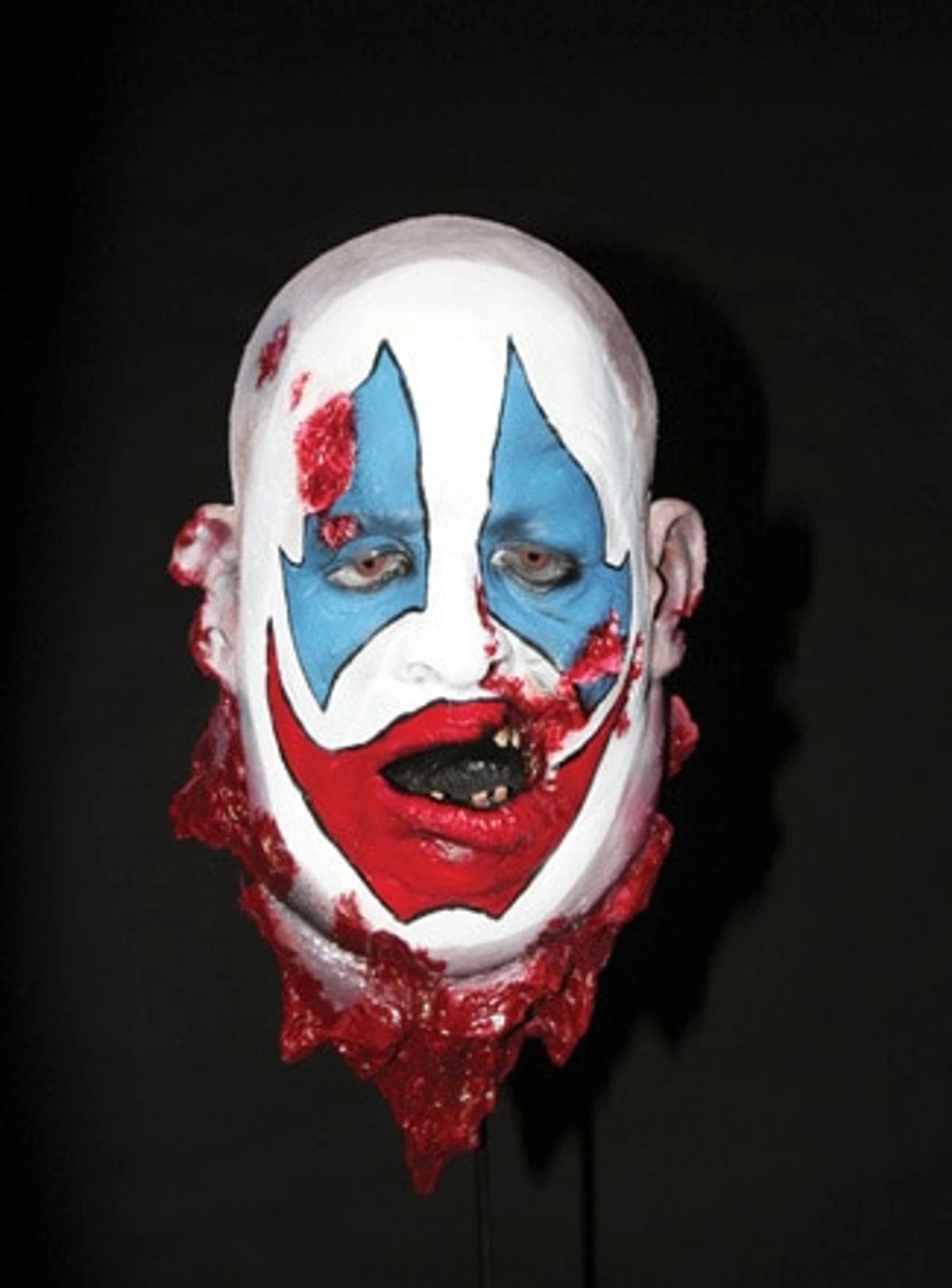 Latex foam filled full size prop head, individually hand painted to look as nightmarish as possible.