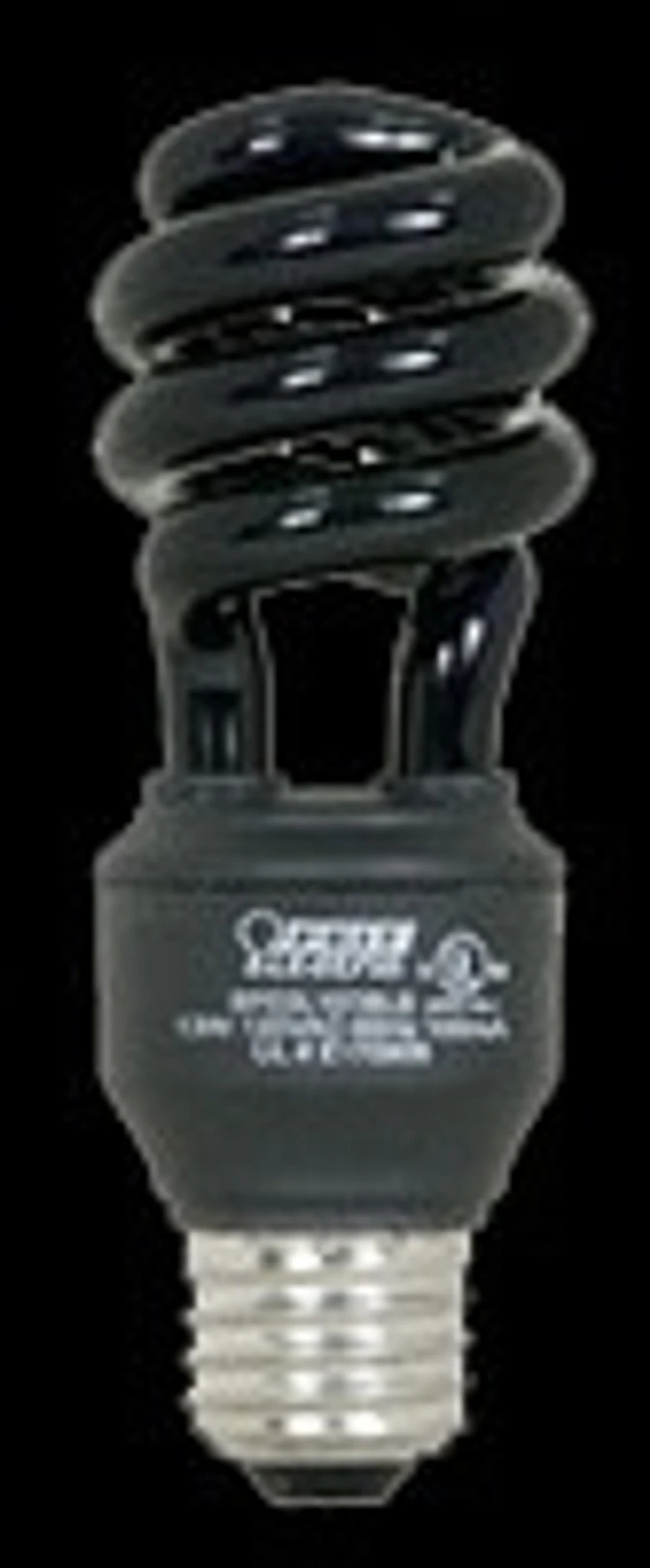This compact fluorescent mini twist ‘black light blue (BLB)’ bulb give the light output of a conventional 60-watt bulb, but use only 13 watts of energy. The average life expectancy is 8,000 hours.