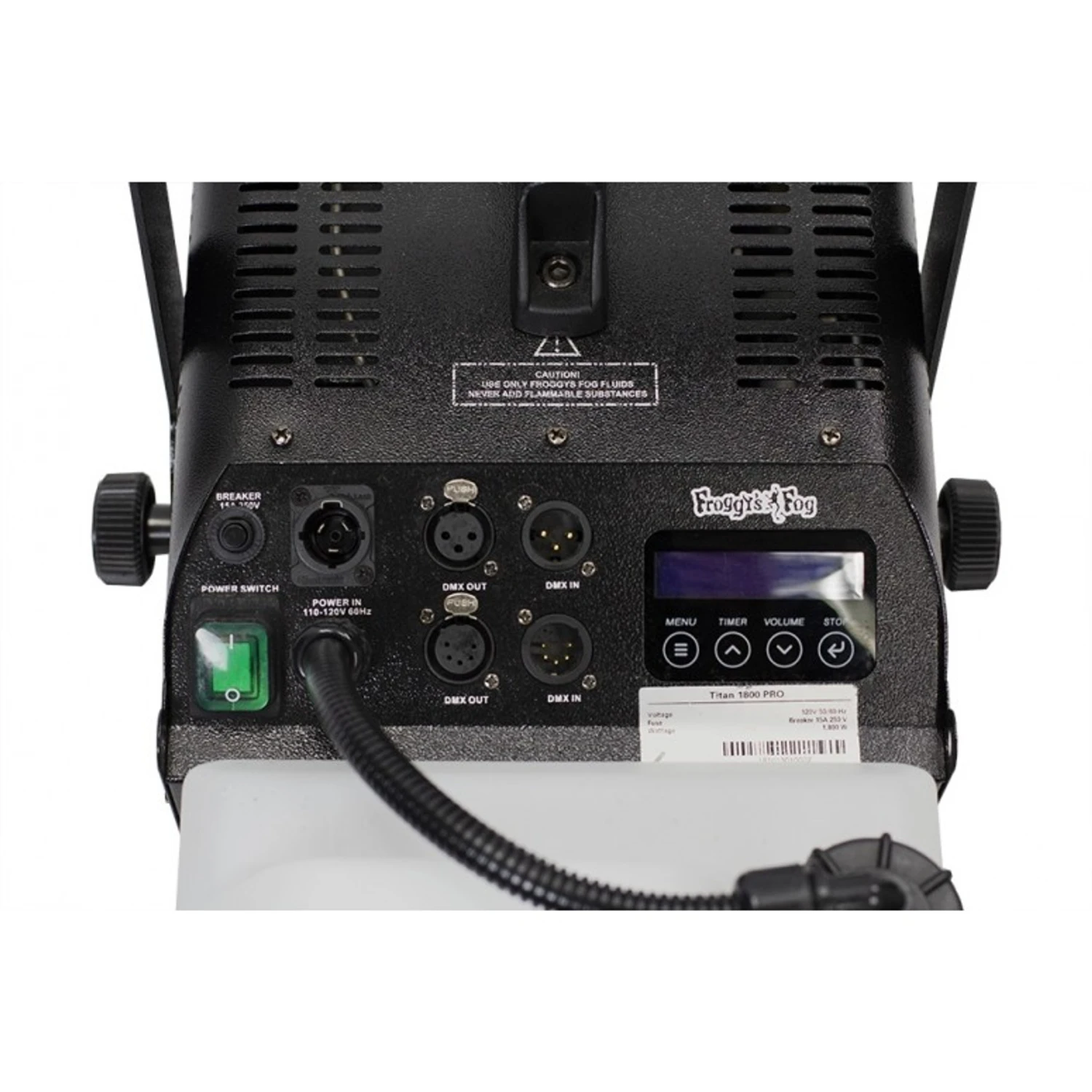 The Titan 1800 PRO is our most powerful fog machine to date! It is loaded with all the features professionals crave.. The Over-sized Heater Core increases run times, Quick Ready Fog Technology (QRFT) has you ready to fog in less than 10 seconds after full cycle and it is ready to fog, and Advanced Low Fluid Sensing shuts down the machine when you run out of fluid to protect the heater core. The 1800PRO also boasts a whopping 1800W heater core to produce over 40,000 CFM. Instant Stop Technology (IST) pulls fluid out of core to reduce spitting and give precise fog output.