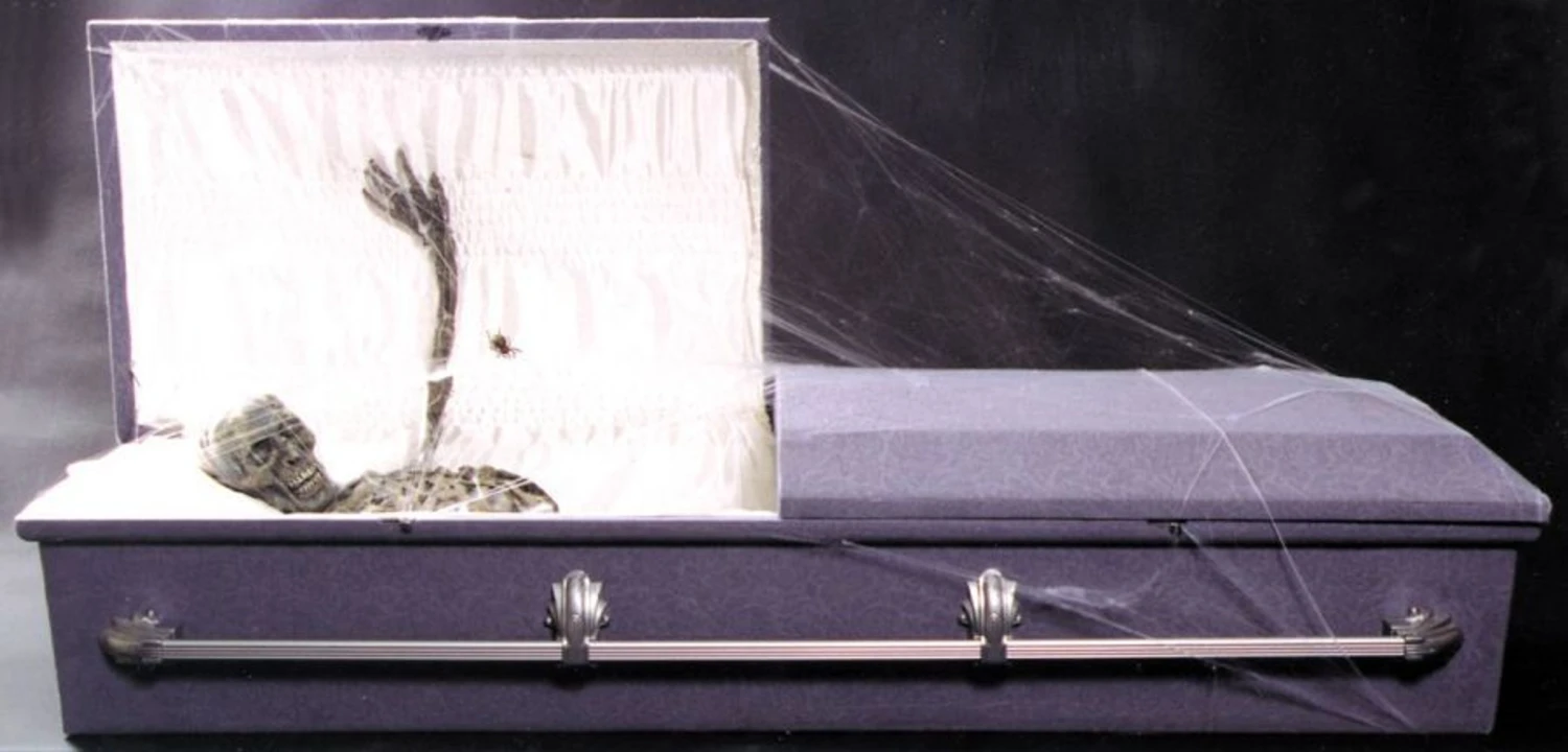 REAL COFFIN – STYLE MAY VARY SLIGHTLY.
