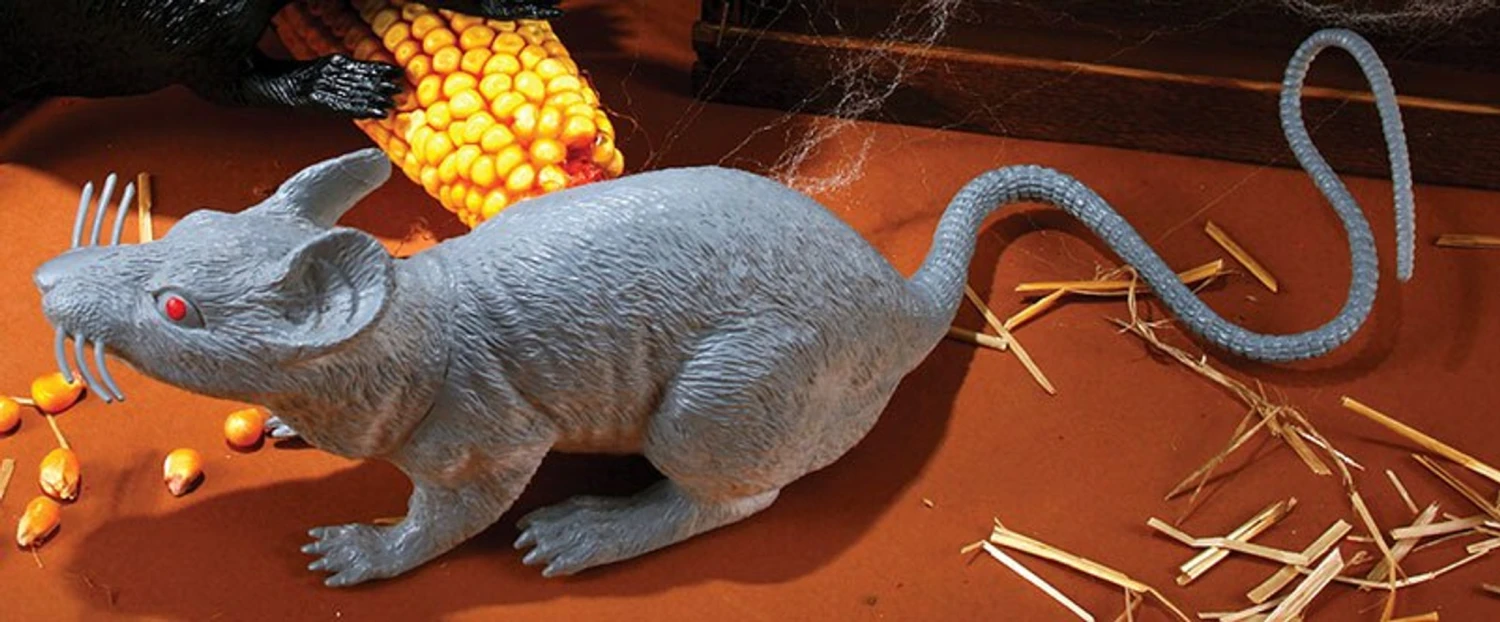 A perfect prop to scatter around your haunted display or anywhere you want to be sure onlookers gasp in horror. Large rat measures 17″ and comes in the color gray. Made from PVC.