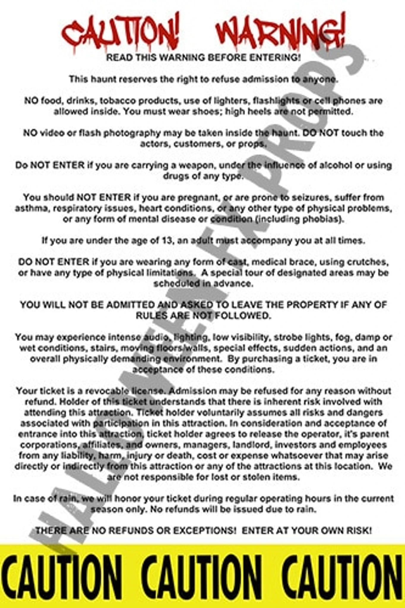 Help protect your actors, guests and your bottom line from lawsuits with this inclusive Haunt Rules poster.
