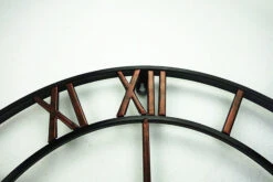 This is a vintage handmade large 3D iron-wrought wall clock with Roman numeral design.