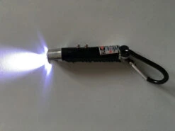 When the guest finds the Laser Flashlight and aims it at the tiny electronic receiver, it will trigger the prop to unlock a magnetic lock, turn on a light or a motor, or trigger another prop.