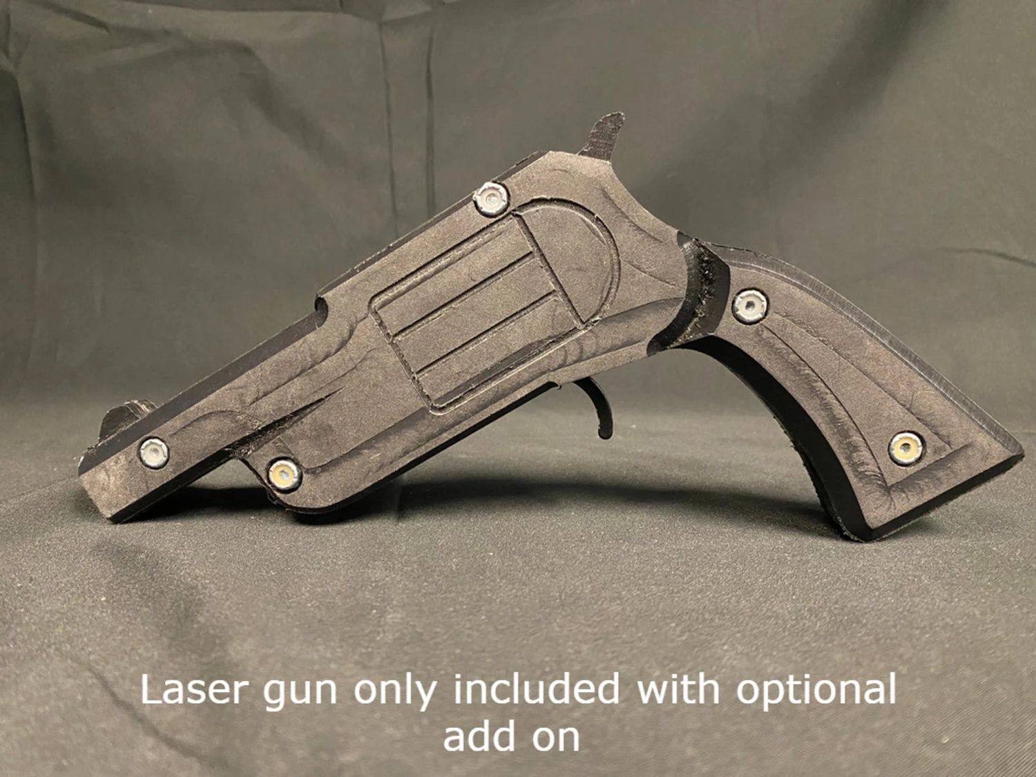 This awesome prop includes 4 light sensors that react to being shot with a mini handheld laser.