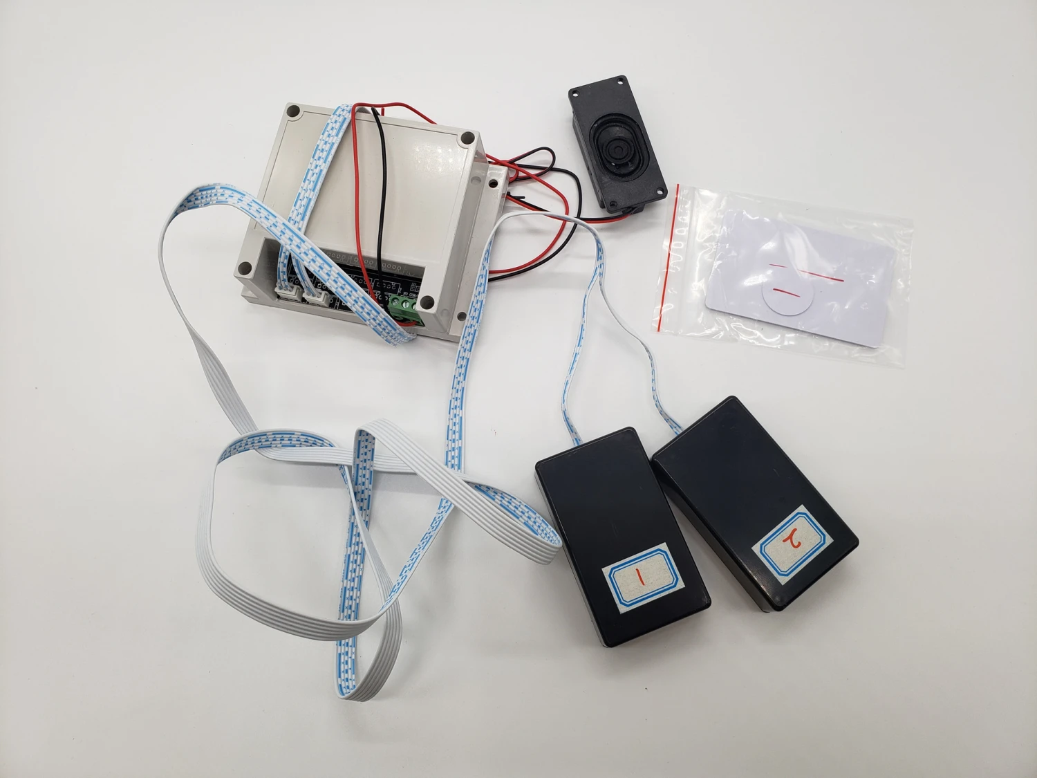 Players must find two magnetic keycards. When each of the cards is placed in a special spot in the room, the prop will trigger an electronic lock (or turn on a light or motor or start any other 12-volt prop).
