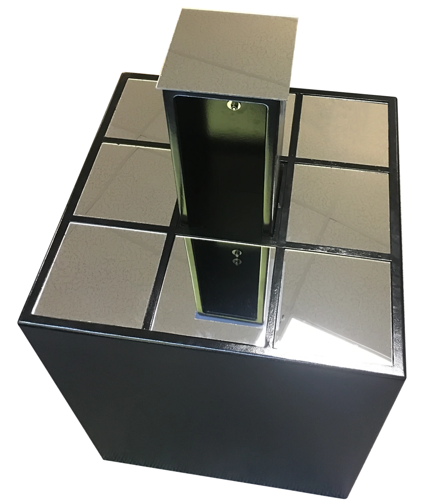 Secret area in table raises up when triggered. 12-volt electric riser.