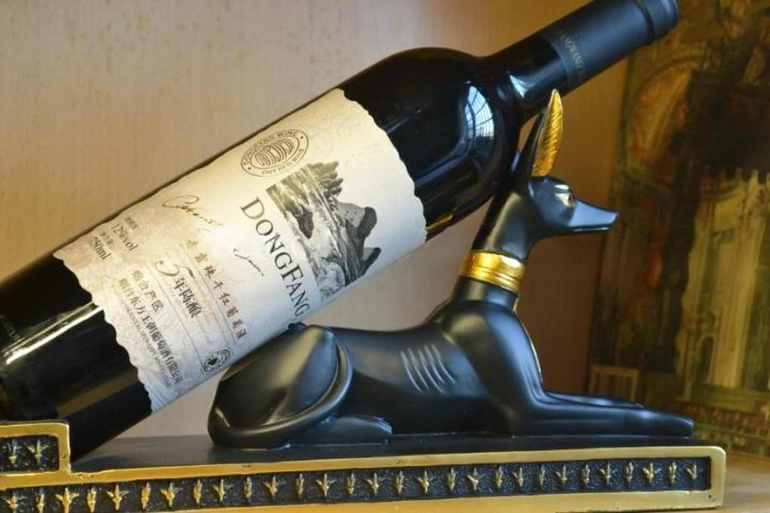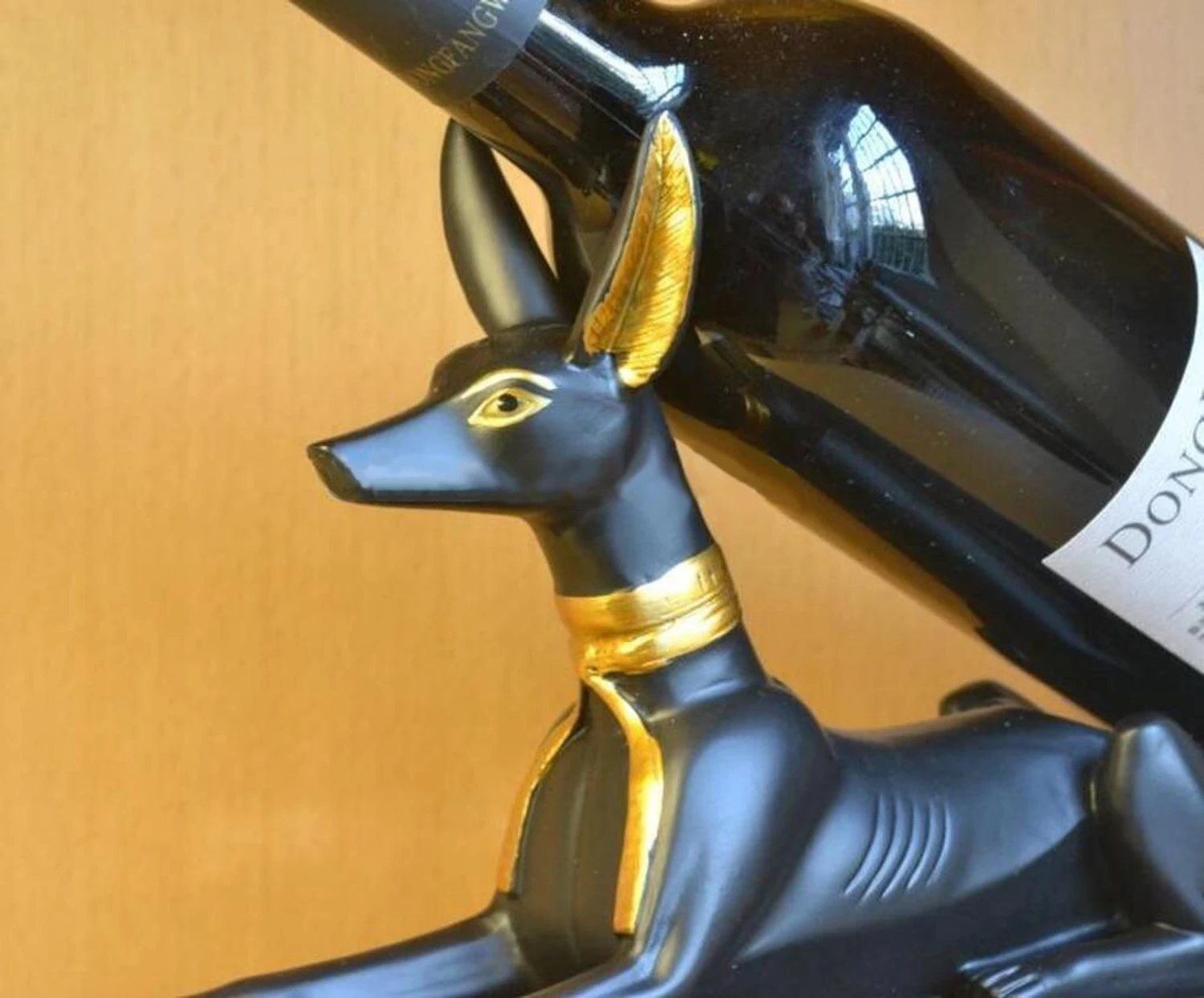 Players must rotate the Anubis (Egyptian dog god) wine rack statue fixed to a small black wood box to the correct position to open the lock.