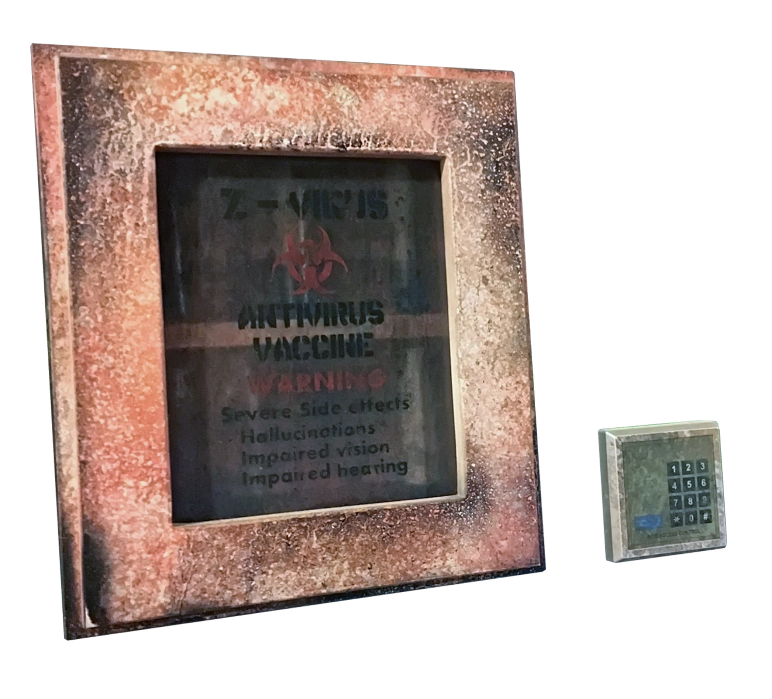 Use the key fob to open the locked serum cabinet. Remove the correct syringe to either trigger a magnetic lock or a light. Good for finales.