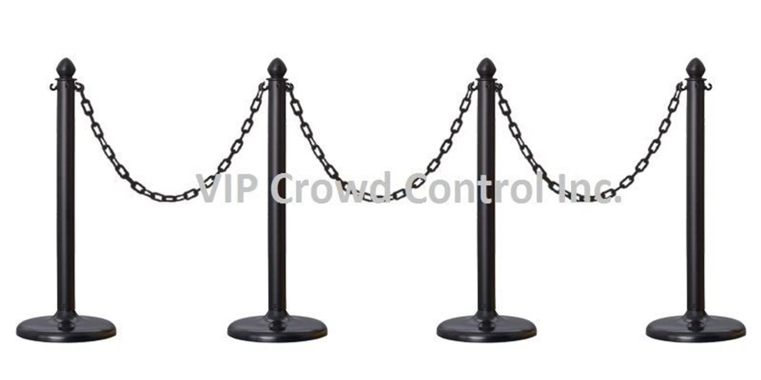 Keep your lines in order with these adjustable stanchions. Set comes with four posts and 30 feet of plastic chain.